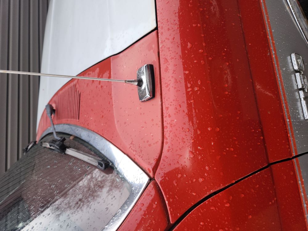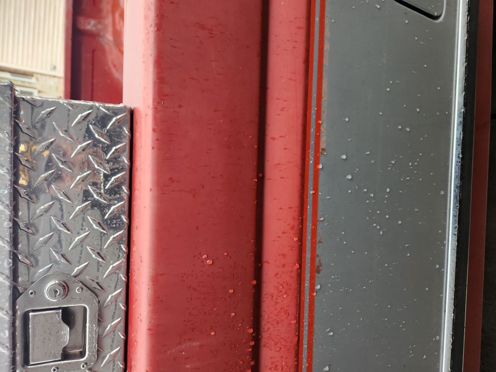 Had some time so I descided to work on the paint, Used a 6 inch palm sander wirh bonnets as I figured the paint was thin and didn't want to use a compound pad. Red dleaned up nice, silver has some shine but I may try the compound pad on it> Washed, used leaf blower, drying towel, 2 passes of compound & wax.