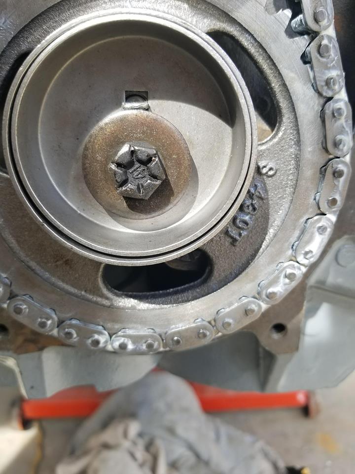 Yesterday I installed the timing gears. The new eccentric came with a cam bolt. However, I opted to re use the old one because it had the hex head with slots cut in it (I cant remember the term and google cant help me either) that keeps a constant stress or torque on the bolt. My book said to use loctite on this bolt so I did . I used a dab of blue Loctite because I didnt want to use the red in this situation. The timing set is installed!