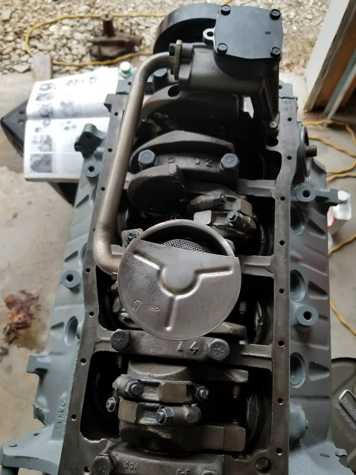 I havent made a lot of progress for a few reasons. I am battling a dirty shop which is being cleaned as I go. I have a few parts missing somewhere that I need to button up the lower end of the build. I want to get the pan on before I go to the top end of the motor. It seems I have discovered two different length oil dipsticks . I think I have a third somewhere to check the other two (I hope). Also, I need to find the actual dipstick tube so I can put it in the pan. It looks to me like the dipstick tube slips in and then a fitting threads onto the end inside of the pan. It looks impossible to do after the pan is attached. I am betting the tube needs to be cleaned up and painted as well.