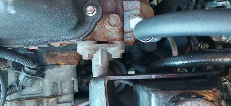I knew instantly that an adapter was supposed to be there. I know nothing about the lower hose yet. another oddity was I noticed an odd rubbing on the outside of the power steering belt and found it rubbing on the adjusting screw of the steering gear. it's a little close for me. that will be another issue to solve if I'm not lucky enough to correct it with engine placement. this is not a restoration! but a "get it running reliably" job. workin man's truck. just an observation.... should one be able to turn a 460 with a 3/8 ratchet trying to remove pulley bolts? the engine spins with far less resistance than expected. I am not a big guy and use breaker bars often, but I don't even need more than an 8"-3/8 ratchet. but I used a breaker bar on the head bolts that is for sure. and intake too. very little compression and number seven piston is pitted like water intrusion. or even a small screw. I'm hoping to avoid machine shop as it will save the customer 1k and three weeks, but I can't say it yet.