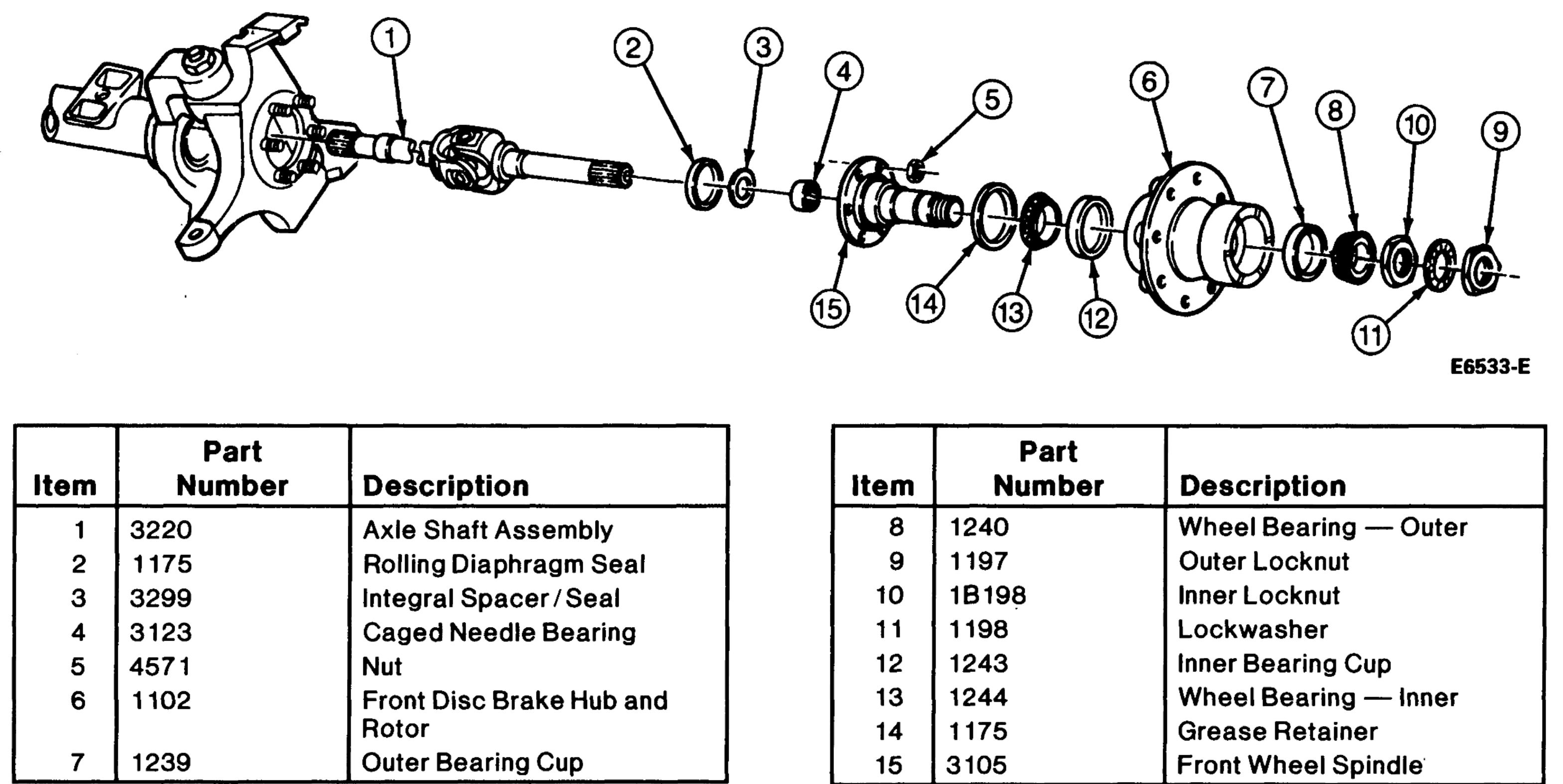 I've just ordered most of the parts for the wheel bearings and seals - all Timken. Specifically I have ordered #'s 2, 3, 4 13, 12, 7, & 8 from the drawing below.