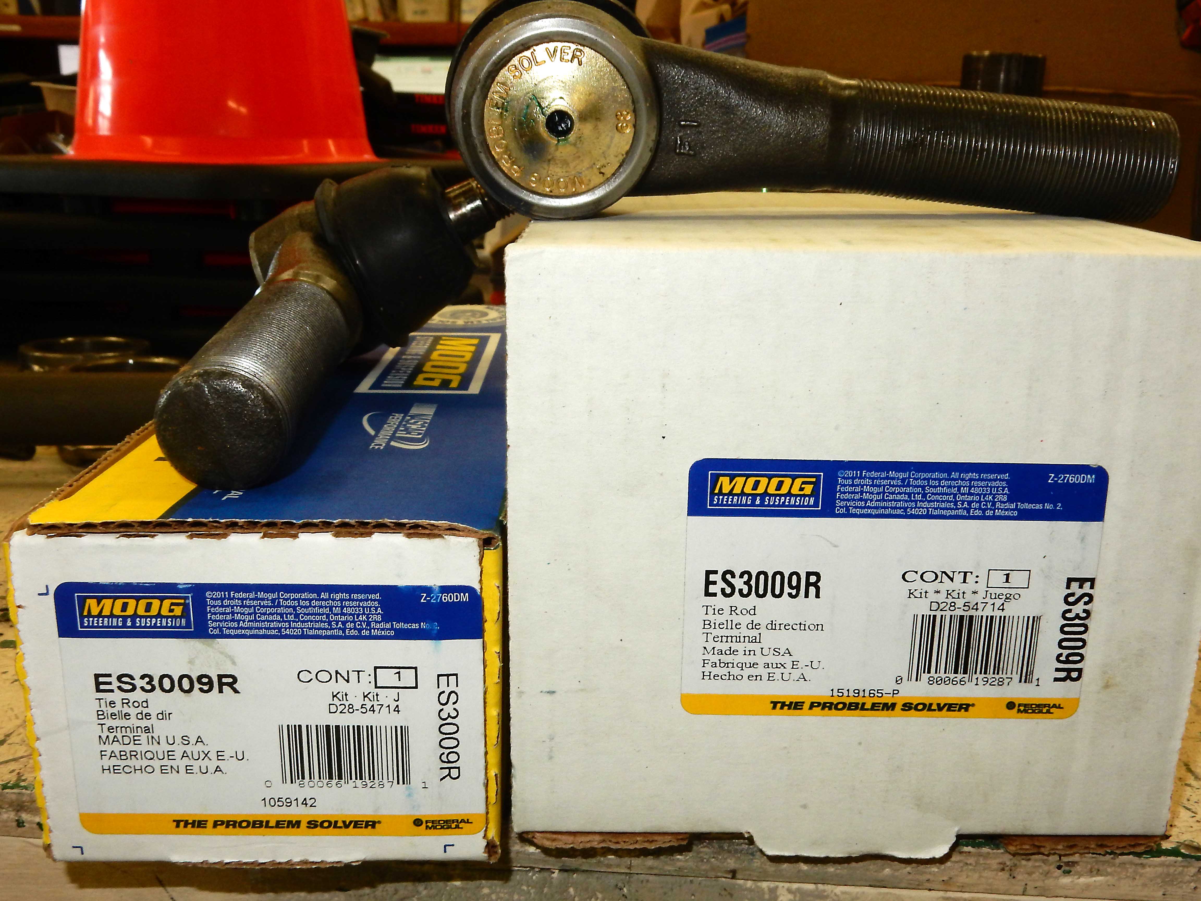 ![]() The first thing I noticed was that the boxes the tie rod ends were in were quite different, even though the parts themselves were identical. ![]() ![]() That led me to check all of the boxes, and I got lucky - all of the major parts were made in the USofA. The only part from elsewhere was the adjuster sleeve, which was made in China. But, it appears to be fine. So, I installed the tie rod ends in the adjusting sleeves and onto the tie rods themselves, and adjusted them to the same length as the originals. And, here's a before and after pic: ![]() So, tomorrow I'll install the eccentrics, ball joints, and knuckles. And, maybe see about the axles and the spindles. But, I do have to think about the dust shields, which were the worse for the wear after getting everything apart. How badly do I need them?