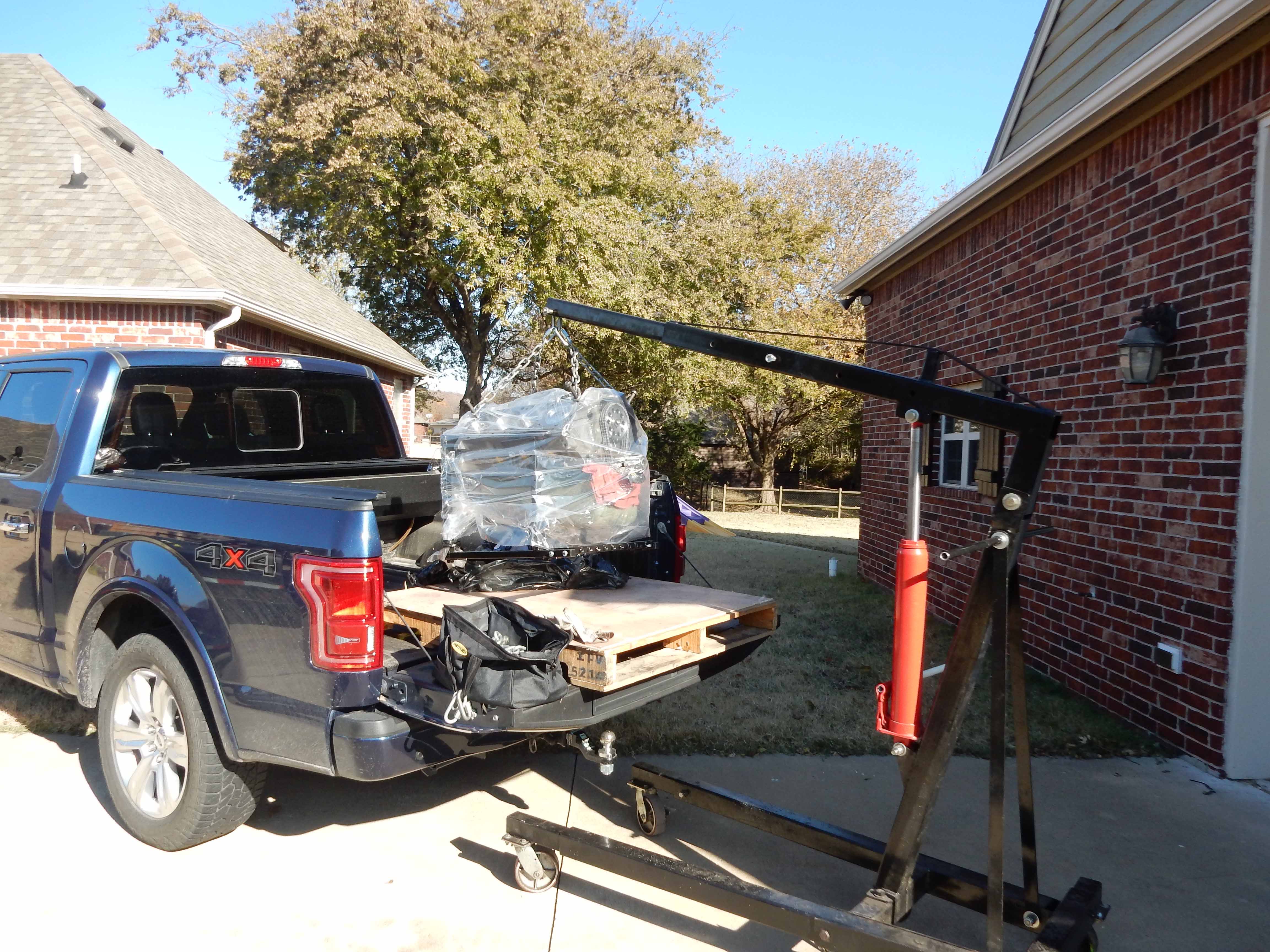 First, I need to get with Totally Stainless and get the right fasteners in the works. And from what I remember I need: Water pump bolts, but those are the same for all 460's, whether carb'd or EFI'd. Right?Valve cover bolts, and I'm going to send them one of mine.Lower plenum bolts. I don't think they are special, so I just need to measure them. I think.The vertical studs for the fuel railsIs that all? Not sure I need stainless pan bolts. But, it looks to me like I need new head bolts. Scotty said to just reuse the original ones, but I started cleaning them up today and I don't like what I'm seeing. Here's a shot of some of them after blasting them: ![]() And if that's not close enough, try this shot: ![]() So I'm planning to order ARP's. However, what are your thoughts? Now for what I did today. Here's the engine coming out of the truck: ![]() And here it is on the stand in the shop: ![]()
