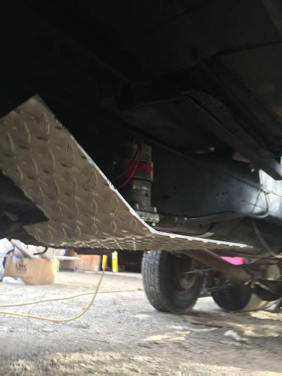 I think I'm going to use a piece of aluminum diamond plate, and bolt it to the under side of the frame. Did it once a while back with dads truck for this old fuel pump setup. I'd rather not puncture a hole in the filter.