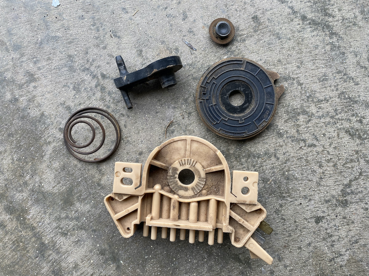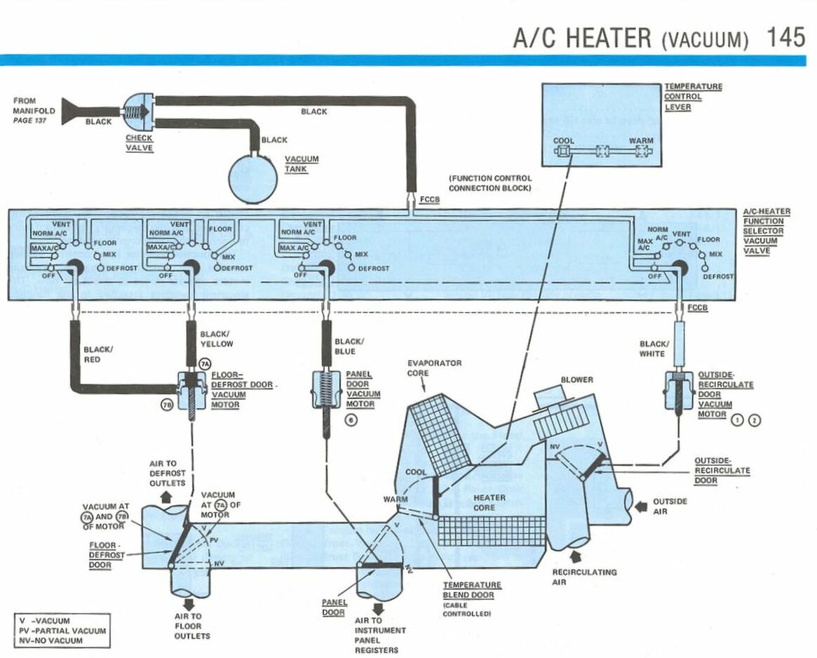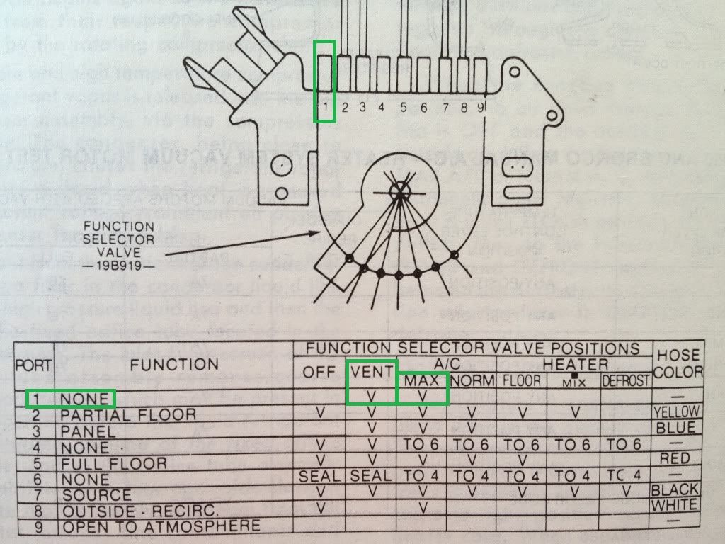 I am going to tackle the vacuum control/heater sooner rather than later…like if I can find the part—YH-361, E0TZ-19B888-B—I will order monday—IF I can find it. Done some searching already for it. The reason is I want at the very least defrost, which I do NOT have at the moment—only vents. Nothing else works. I remember tackling this a bit because FuzzFace mentioned somewhere along my way months ago. I went to the pick, and could not find the exact module—found a ton of 1983+ modules tho. Of course, they do not work unless I swap controls, but then there’s that cable problem as they are different. I looked under the dash today and moved the control—the entire bottom half of the vacuum module (the black round part) MOVES—like it has lost its pivot inside the module. This might explain why I hear air sucking when I move it. Hey, at least I got monster vacuum through the lines! Might as well check the 2 control valve assemblies while I am at it. But this needs be done before winter sets in. At least my wife has her half of the garage back for her car—so peace reigns in this household, and it is a beautiful thing.