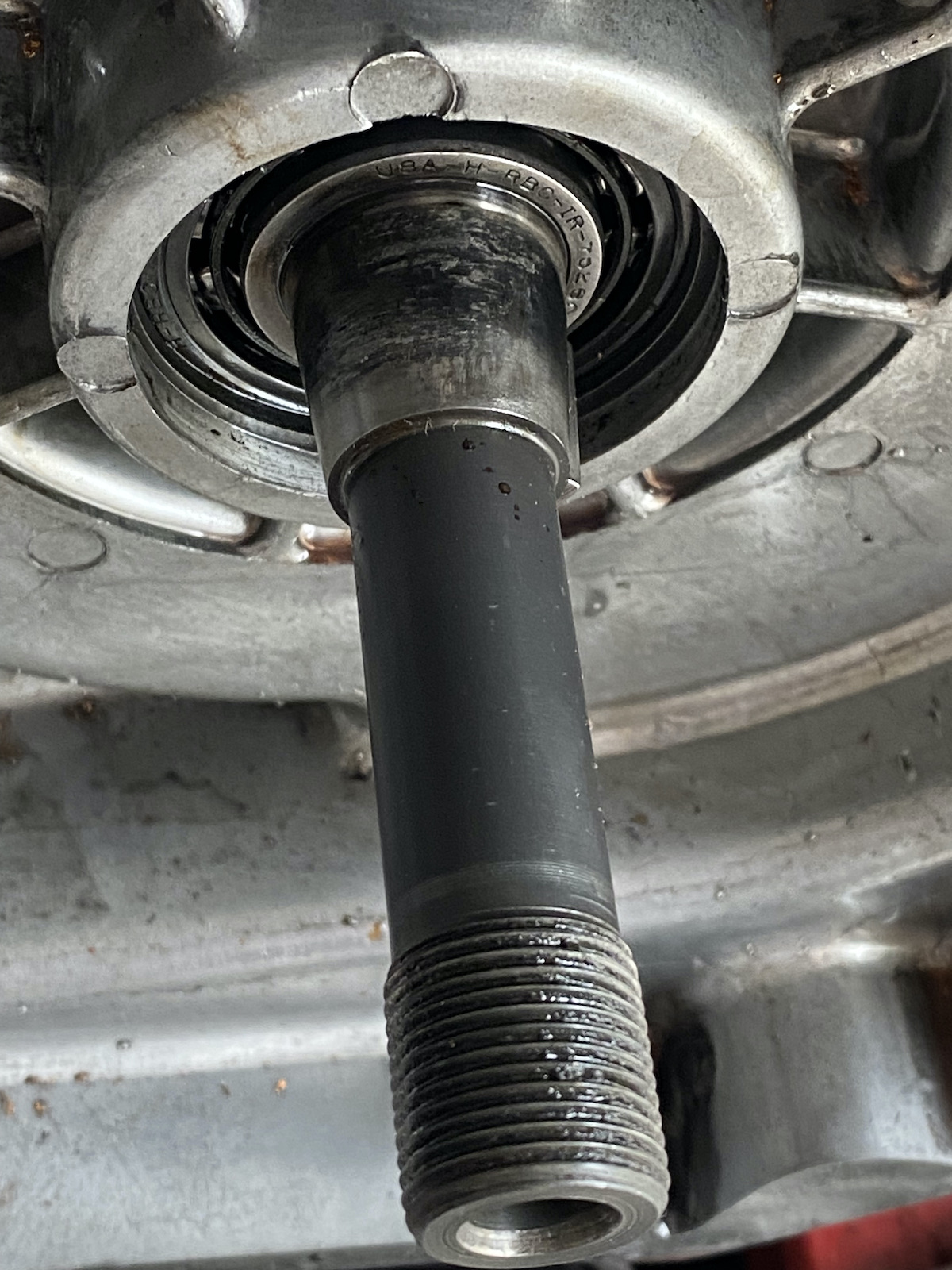 Anyway, note the OLD hub. As you can see, someone already tried to use a punch to seat the race. It is also badly scored. New hub came with races, and I installed new bearings. The old race popped out with three taps…it was that loose. Also, I put the spindle nut and key lock on it. It was so much easier to get the torque requirement. Much easier to use a full socket. Will have to see if it works like as well as the other. Finally, you will note the old studs look to have been (attempted) to be welded in! What in the world…. The welds did not hold—that all came out with two taps. They must have had problem before, and welded over rust…none of them held at all. Have a nice weekend—I am in Harley world for a while now. ![]() ![]() ![]()