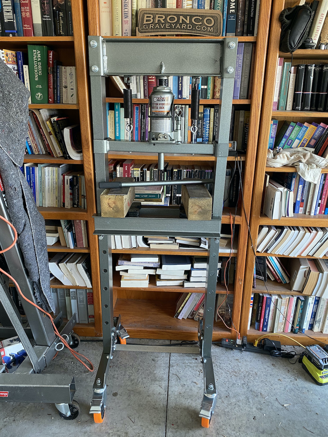 Yes, I am still here, and no the bike is not fixed yet—tore down a bit of it though. I have been assembling all the parts needed, and then I bought a new toy after pricing out some of the pressing I will need to do. Same as just buying a floor press. So, I did that! Put 5” casters on it. Will be useful for my truck too, so I decided, hell with it…gonna get it. Yes, I have a lot of books, and yes my books and shelves are in the garage. One day, I aspire to move them into a bigger house, and buy a lift like I think Gary has! Hope everyone is well! Oh, I had another Home depot classic auto encounter—will post—not a Ford though, but something quite rarely seen. ![]()