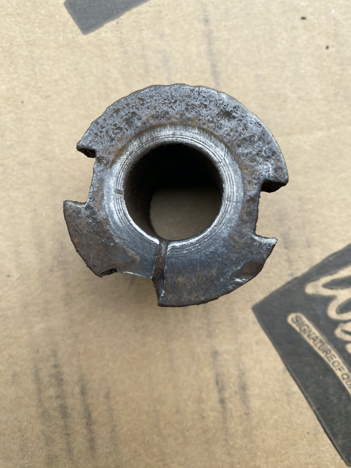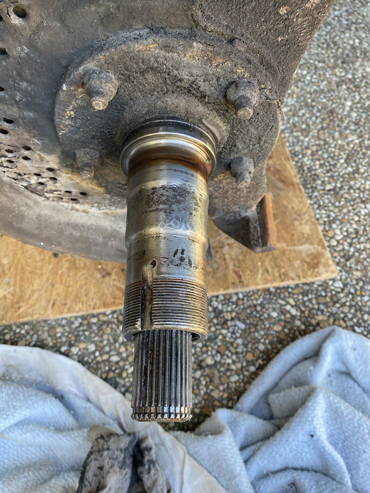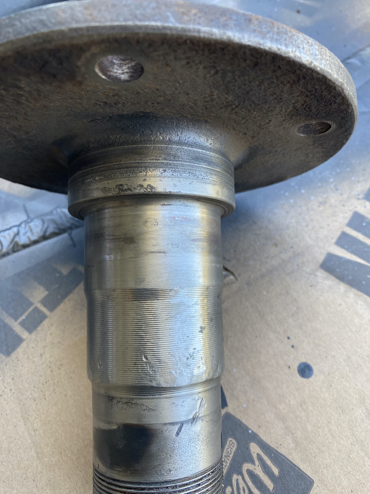 Everything came off rather easy today. I picked up some channel this morning for the Bob method of pulling the spindle, but after a couple whacks with the dead blow, it moved. So I kept tapping around it until it gave way. Spindle looks ok, except for some discoloring—it got hot at some point? At any rate, if anyone sees something out of the ordinary, let me know, but It is smooth in all the places it needs be. The hub came off relatively easy. The bearings were packed with….blue grease? All pics follow. The shaft? Pulled out like butter. No issues. What is my issue: the knuckle. I got the nuts off with an impact, but the camber is rusted to the top ball joint—I tried pulling the sleeve, and it broke the neck on the sleeve—see below. So I would say that the camber sleeve is stuck in there. And the SM says this should be removed before removing the ball joint. So I am in ugh’ville at the moment. ![]() Tomorrow, Parts arrive. But I will be changing out the spindle nuts, which have seen WAY BETTER days. Also need order new camber sleeve. TorqueKing says that 1.50 degree is the factory standard. But will get the shaft and hub done and begin to prep that and dust shield for new paint. OK, to the pics: ![]() ![]()