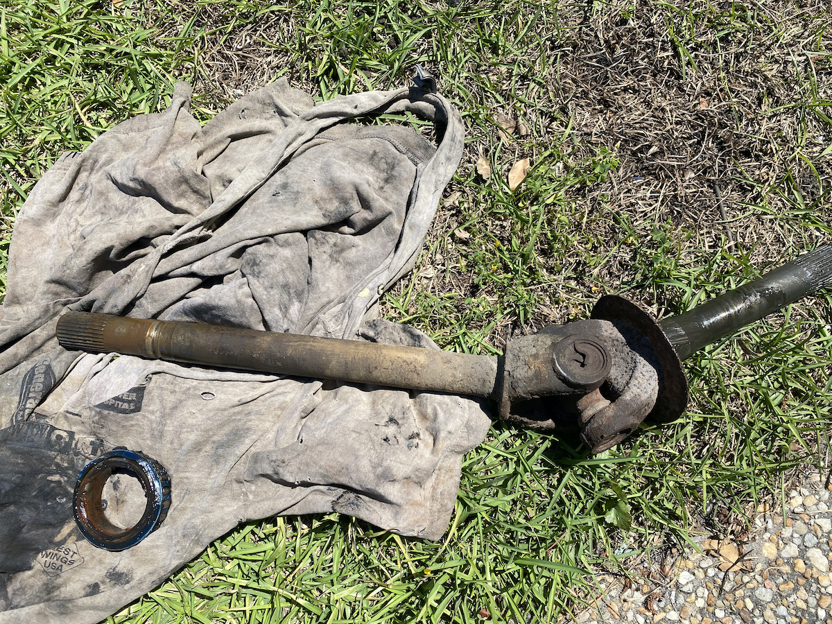 Oddly enough, my u-joint on the drivers side was shot as well. I am replacing the axel pivot bushing, u-joint, upper and lower ball joints, all seals, and the small bushing in the front shackle. Oh, and a new spring. The next thing I will tackle is the axel shaft seal on the drivers side of the pumpkin. I am going to attempt to do it without removing the pumpkin. Should get to it this week. I plan to use a slide hammer and a hook to remove the seal. To install the new seal I am planning on using a seal driver with a 2 foot piece of pipe over the handle so I can pound it in. I’ll let you know how it goes.