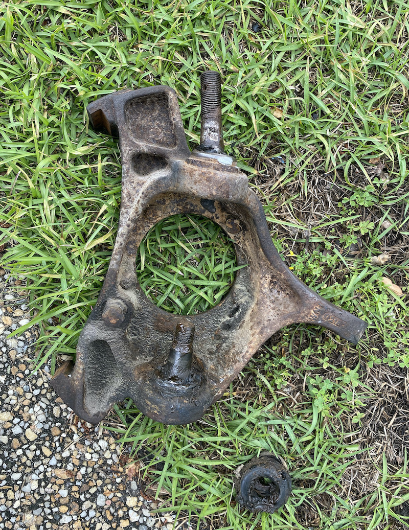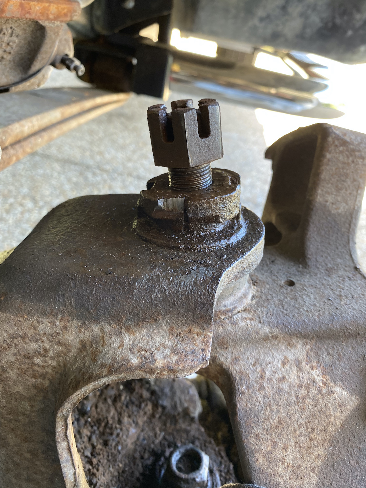With special thanks to Atlas/Carl, I got the knuckle out first thing this morning. It was not easy. Using the pickle top and bottom and alternating aggressive hits helped. I kept the king nut on, because when it broke free it did so violently you might say.