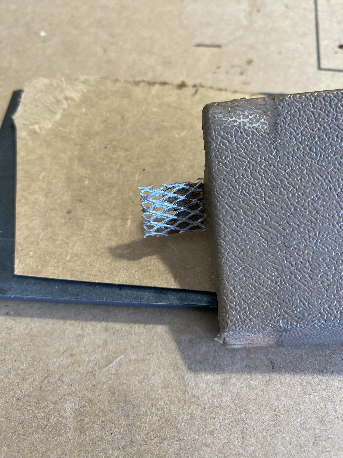 Anyway, started to prep some interior—both the dash and some pillars I got from the pick a year ago. One pillar needed a tab fixed. As you can see from the dash, I cleaned it with rubbing alcohol and started to draw the lines in to prep for the stain. I am going to have to use some Satin black SEM on one part as there was glue inside the little rectangle container. This is the original dash which was given to me when I bought the truck. Have no idea why they removed it, except some of the indicator light covers are missing. I have new ones from the pick and will use adhesive to replace them. Anyway to the tab repair. My old ones disintegrated when I took them off a year ago. I found some but one had a broken tab (first pic). So, I got some mesh, sticky tape on one side. Cut it, wrapped it, and used a plastic welding iron to juuuuuust melt it into the plastic. Then wrapped it with a small patch of fiberglass and resin. It still needs to be sanded (I will use a Dremel sand wheel) but here are the results. ![]() ![]()