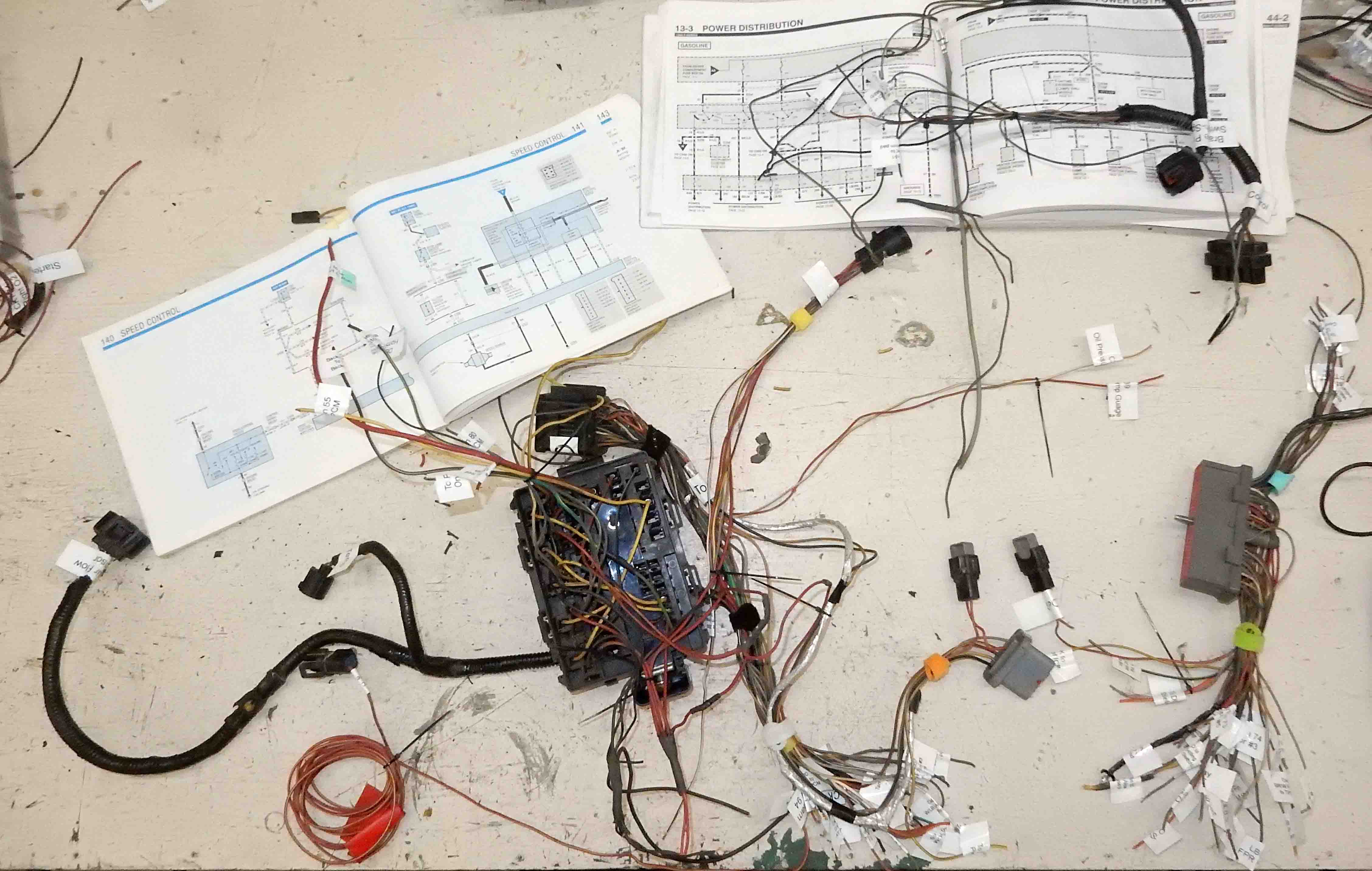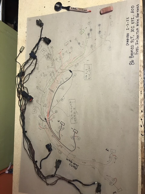 I have a bunch of the tie wraps with release tabs I use for working on a harness as, like the Velcro, I can loosen them to add a wire I missed. A few things I have learned in rewiring several vehicles. First, when laying out a harness run, it is highly advisable to have a pattern to lay it on, both corners and up and down portions because once taped up, it can be nearly impossible to get it to fit correctly. Second, any place it runs where it needs to be able to move, whether bend or twist (power wiring into doors) the factory wiring is usually just a loose bundle secured at one or both ends allowing the wires freedom of movement. Wiring to and from the engine, needs to allow for engine movement, you would be amazed how far a large torquey engine can move against what can seem like nearly ridged mounts.