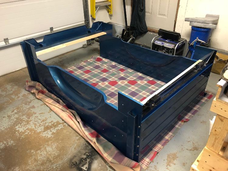 There are a few threads about bed rebuilds and such. Quite a bit of info around, although probably not all in one place. I rebuilt the whole bed on mine last year, so I can answer just about anything. No, it's not really like a flatbed. If you are only changing the wood, you can just leave the bed right on the truck. You'll want to replace the wood mounting blocks while you have it apart, but just doing the wood is pretty straight forward. I assembled the "box" of my bed on the floor, upside down: ![]() Then I had a friend help me flip it over right side up and sit it on the frame. I had a couple 3/4" boards in there I can't remember why now...lol. ![]() Then I pulled the boards out, and inserted the bed crossmembers and new wooden blocks: ![]() Once you're that far, you can just slide the wood and strips right into place. ![]() I used plywood like the later Bullnose Flares, but the process is all the same with the boards like the earlier trucks (1980-1982)