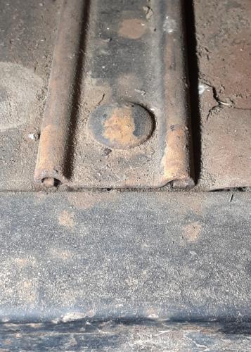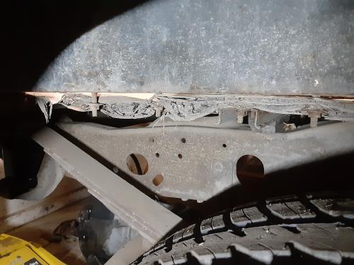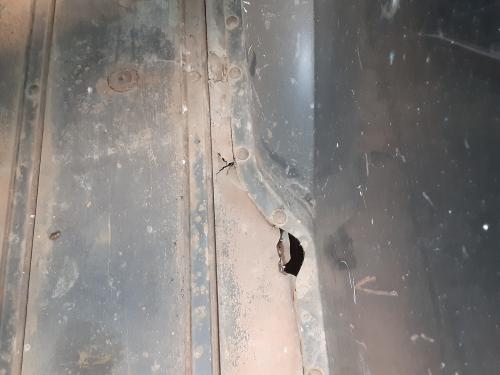 Unfortunately the edges are very rotten. The center board is actually pretty good, but both sides are bad. Here are a couple of pics of the floor, and the edges under the right fender.