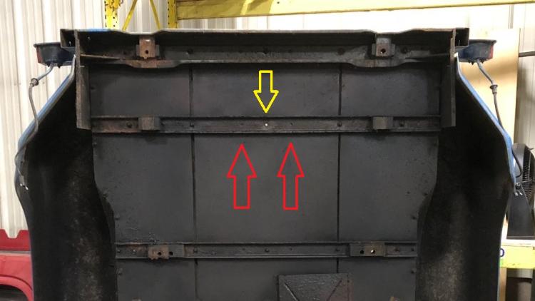 I think if you look at the bed crossmembers in your truck, you'll see that even if you have the factory 3pc wood floor, the holes for the previous style board floor were there anyway. You can actually see them in the pics of the underside of my 1984 bed. ![]() It's probably not easy to notice unless you had the two different trucks side by side, but the outer bed strip locations were actually the same between the different versions. All that changed was that the early floors had two strips down the middle, and the later trucks had one strip down the middle. The outer four strips were in the same locations on both. If you look at my picture above, you'll see that the center bolt hole is there for my 3pc floor, but the two other holes (red arrows) were there for the board floor anyway. So when the guys were assembling these beds, they either drilled those center holes at the time, or they were there all along.