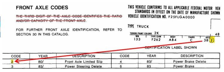 Gary, it's up closer to the top on the axle ratios page...but it says it refers to the front axle? I know 2 and 3 are front axle, but this being a 2wd truck...