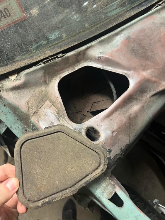 The original floor covers were rusted to pieces. I tossed em. As for the cowl plugs... Well, that's encouraging because I couldn't find any online. I'll try cleaning this one up the best I can. The driver side drain didn't seem to have more debris than passenger, but that may have been because the entire cowl was full.