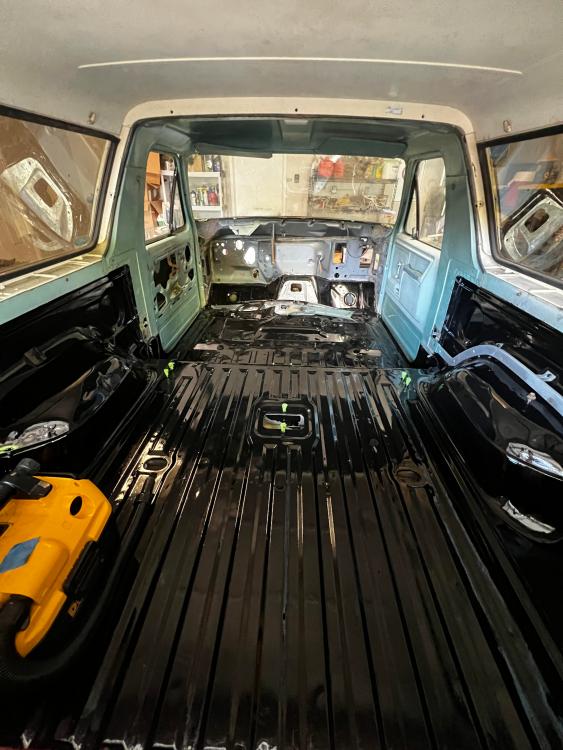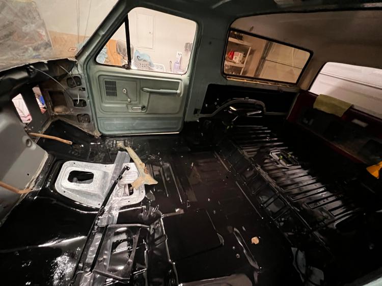 So I painted the front floor. I figured I would get the exhaust shields on to coat the rivets but I got sick of staring at the unfinished metal over the past 2 years. I also bolted up the transmission to the crossmember to make myself feel like I'm actually doing something. After speaking with some paint specialists about my engine bay I have elected to wait out the weather, so I'm trying to occupy myself piecing the drivetrain back together. Just need to rebuild the driveshafts and clean up the transfer case.