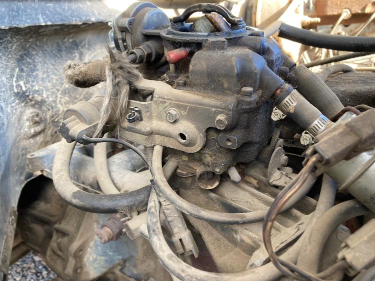 I dont think you will find anything on the engine on what it is or from. On the dist. just take a better picture of it and if it has a vacuum hose going to it. I think the dist. dose have a vacuum hose and the truck has the DSII box on the inner fender. I also think the carb is a feed back from something else. If that is the case and if the carb is not working right it might be best to replace it with a non-feed back one than try and rebuild it. With non-feed back parts installed we can then help you tune it, feed back system a computer dose the tuning. Dave ----
