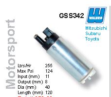 A Walbro 255lph fuel pump is not much bigger than a OE stock in tank electric fuel pump. Now in my case im looking at the GSS342BX which is a GSS342 series of pump the BX is for a 96 Mustang by application while non BX is just your generic universal. The mustang variant I found can be purchased for less via rock auto than the non BX. First this is a NOS sending unit that I got the photo off ebay that shows the pump and the pump cradle. This is a low pressure low volume lift pump. ![]() This here is the walbro line up of in tank high pressure fuel pumps. One I will be using is the top GSS342 with the 11mm inlet which will allow the use of the holley fuel mat. ![]() And this is the dimensions of the Walbro GSS342 series of fuel pump which is 255 LPH. ![]() As you can see the pump has a max PSI of 124, is 255 lph fuel flow output is 11mm or 3/8", inlet is 11mm, the diameter of the pump is 40mm and the length is 120 mm. It will fit in the OE hanger just fine. You may or may not have to cut the fuel pressure feed line above the pump for clearance but on the 85/86 sender I used on a '82 F150 I installed a 5.0 coyote in at work I didnt have to cut the OE sender and a foxbody mustang high volume high pressure Walbro pump fit just fine without modifications to the cradle. You may feel safer with having a clamp to hold the pump to the support rod but I have never used one as the hose and the rubber isolating through the cradle I found was enough to hold the pump stable. So tell me do you think a 40mm wide Walbro 255 lph fuel pump is too big to fit through the hold in the OE hanger? The pump is just over 1 1/2" wide. Pump length is almost 4 3/4" long. I dont know the OE lift pump dimensions and you wont find one listed online I dont think as OE replacement pumps dont give dimensions just application they fit as they are not universal but vehicle specific. I honestly have thrown aftermarket universal or foxbody electric fuel pumps in Fords using the OE ford hangers with no problem on numerous EFI conversions I have done where an aftermarket fuel tank isnt avaliable with a universal fuel pump included. I dont have a photo of the ones Ive done as I never thought of taking one but if you are interested when I do my EFI conversion on my truck after I finish my engine build Ill gladly photograph the conversion and how I do it utilizing the OE hanger using an aftermarket high pressure high volume Walbro pump.
