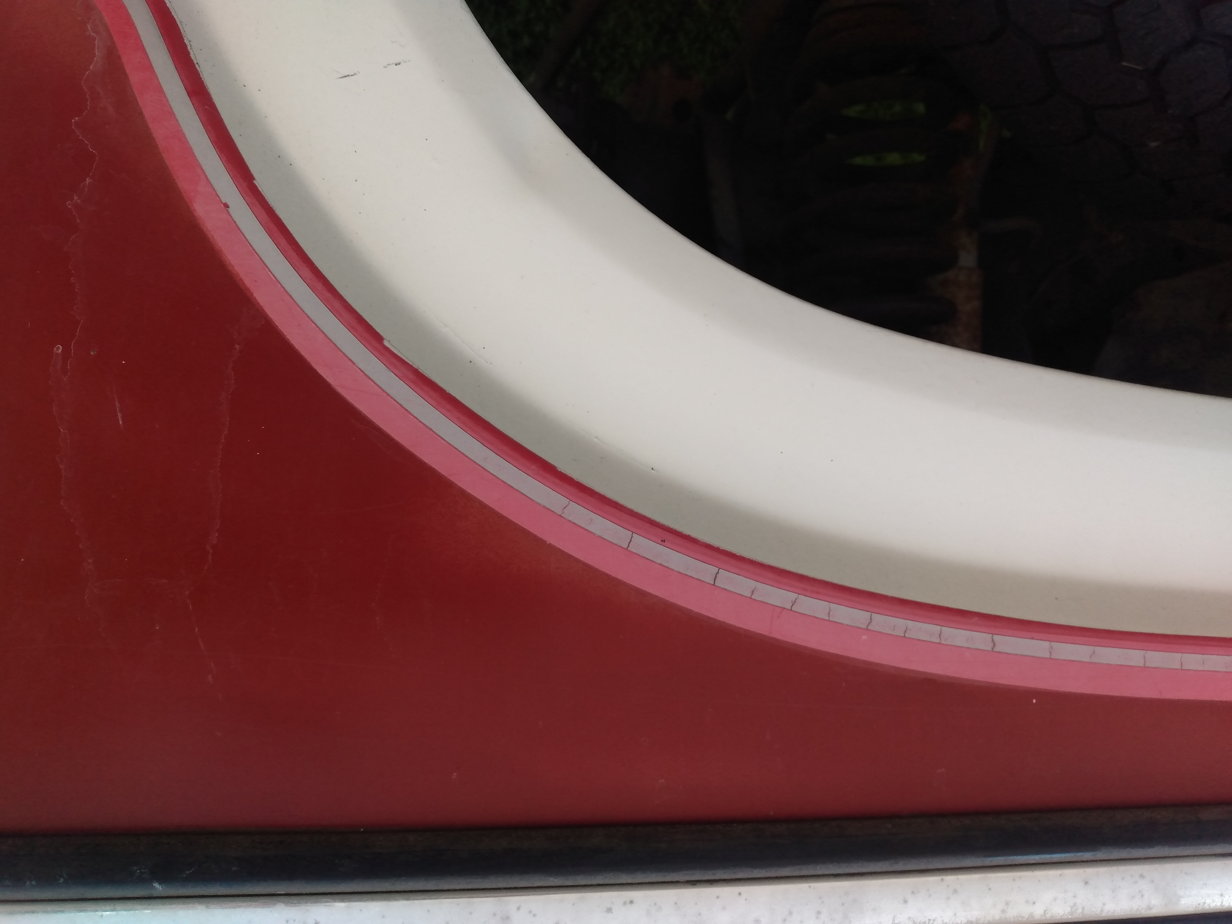 I have a 84 F150, white with red panels. The tape around the bottom of those panels is partially damaged. I tried to find a source for that tape online but I can't find the right width. I need 7/8" wide red/silver/red with a silver center that seems to have been reflective.Anything close would be nice. I'll replace all of it, so it does not have to match. Does anybody here know where I can find that? Thank you