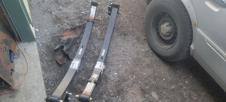 Got under it and verified the crack on the outside of the rail has NOT spread past the square hole/relief in the frame behind the shock tower and has remained at the bottom. Woohoo!! Looks like come along and a good bead of weld should take care of that. I have also saved a piece of a Fisher plow push plate that is bent to the angles of the frame made out of 1/4" plate that I'll be welding to the outside of the rail. I was finally able to seperate the inner liner from the donor frame rail I cut out of one of my junk trucks also. What a chore that turned out to be. That's going to be fun cutting it out of my actual truck. Eventually I said to heck with it and just torched the welds and split the rail back with an air hammer and pry bar until it separated. I did find the inner support brace was in good shape so I may make something to clone it but heavier duty. I have also been studying the shape of the frame liner itself and in finding that it'd only made of 3/16 steel I am trying to figure out where I can beef it up and also make some kind of support brace similar to what the Jeep guys use. The donor liner is in better shape than I anticipated thankfully. Also started getting my leaf springs ready for the swap. I am hoping these F250 springs are worth 2" of lift over the stock F150 springs so I can finally remove one of the stacked blocks...either that or I'm going to find I need at least 4-5 inch blocks to keep the height. I think we will be ok though. I seem to remember F350s being taller with a 3 inch block and springs by themselves which is about where my F150 sits height wise with 5 inches and absolutely worn out springs. If anyone has any insight on heights please let me know so I only have to do this once. For reference, the springs I got are Dorman 43-695HD...6 pack with 1 overload for 7 total. Thanks :) ![]() ![]() ![]() ![]()