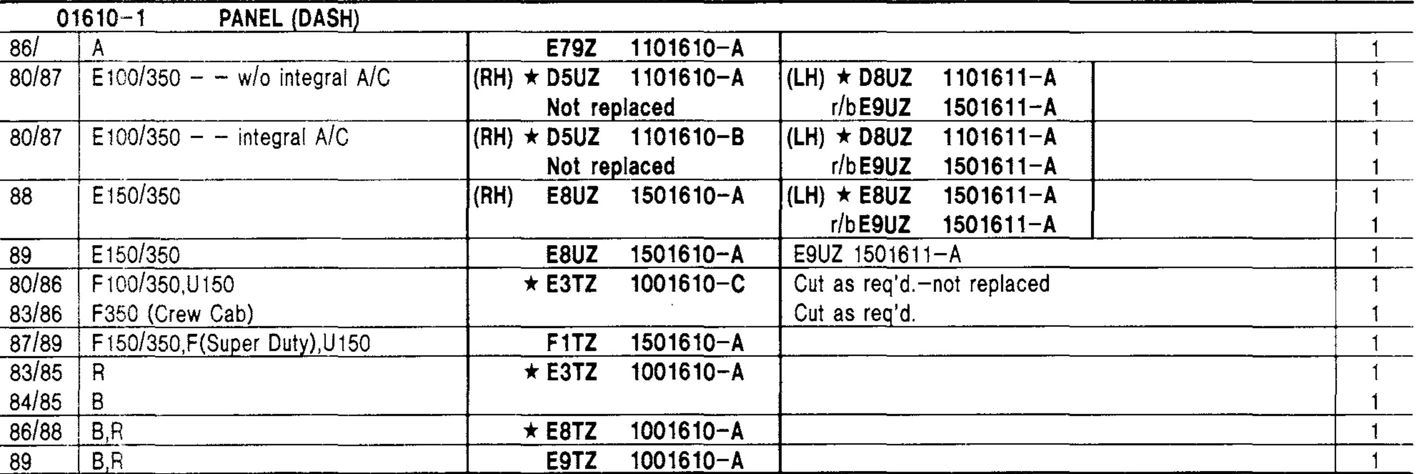There is but one dash for these trucks, as shown below. And there is but one illustration for the Radio Mounting Plate - note that it says "1980/" and that means 1980 to the end of the catalog, which is 1989.