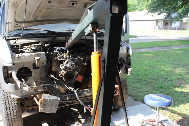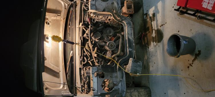 ![]() Then I tried to hook a chain through the engine lift points. There is not enough room between the engine bay ceiling and the top of the valve covers to get my shop crane in there. So after some finagling, I just strung a chain between the bolt holes in the heads and pulled up and out. Eventually, it came. I kept swaying the engine/trans back and forth while using a 4' convincer bar. No damage so far. I got it about 1/3 of the way out. ![]() ![]() ![]() ![]() I don't know what I should do about the tail of the transmission. It is not supported right now, and I was thinking about running a strap around it and back up to the shop crane to lift it. But I had to attend to kids' needs and stuff for the evening. So it's getting closer!