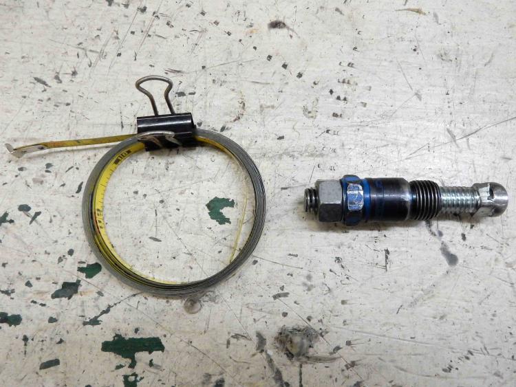 On the right is a piston stop, which I use to find TDC on #1. Set it up so it stops you several degrees ahead of TDC when rotating the engine clockwise and then make sure it stops the same number of degrees after TDC when rotating it CCW. If not your balancer isn't accurate or has slipped.On the left is a tape that I use to measure the circumference of a harmonic balancer and then, having done the math, mark said balancer at 90 degree increments for the TDC of each cylinder.They are in the box/tote.