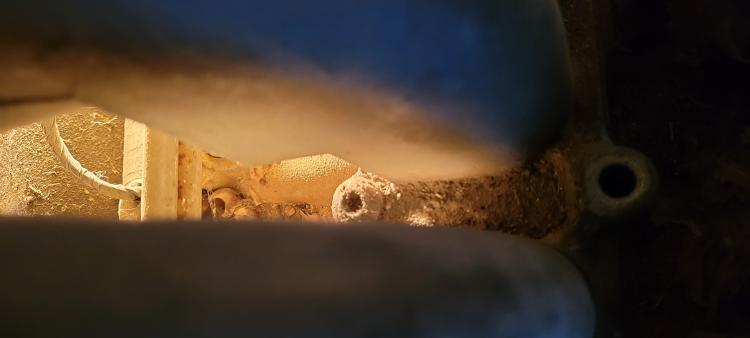 I flew back home today and had a few minutes before the kids got home from their last week of school. So I continued to remove hoses and wires. This is the A/C line, but it couldn't have been containing the refrigerant. It had some solid material resembling wood glue for a sealant. Looked like this: ![]() So there was no tell-tale hiss when I released the hoses. Not surprising or disappointing; it was cheap enough. When I took the fuel lines loose, I was pleased to find that they were still pressurized and full of fuel. I took loose some EGR hoses and I will be continuing later.